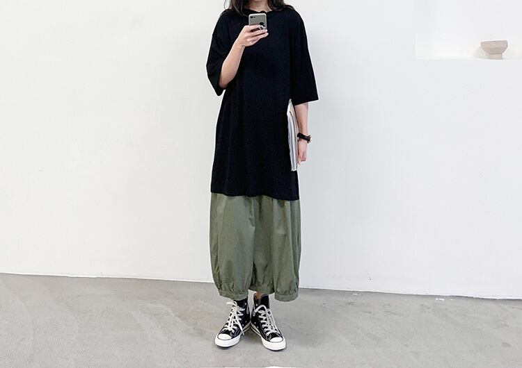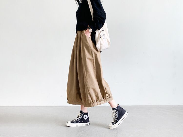 ワンサイズ:総丈85 ヒップ124 ウエスト62-110 もも周り92 裾周り80