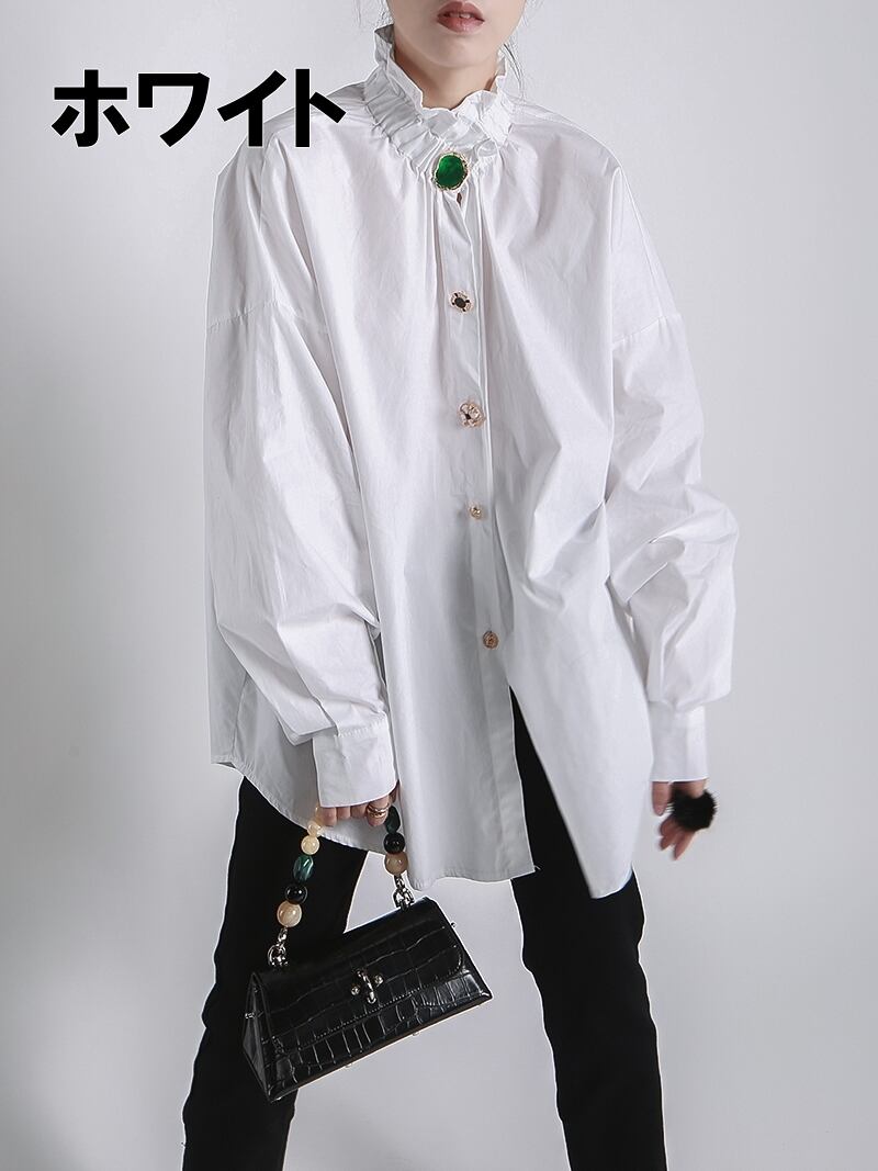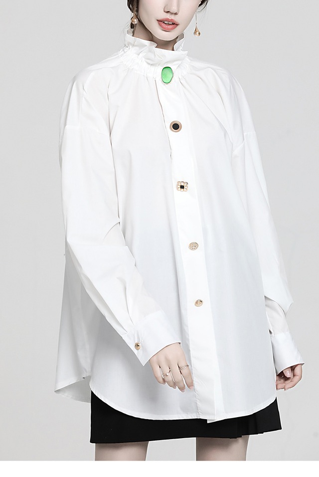 トップス レディース 送料無料 2色 シャツ ブラウス ハイネック フリル襟 ヴィンテージ ビジューボタン 透け感 ランタンスリーブ パフスリーブ 半袖 ロングスリーブ ストレート Iライン 白 ホワイト ライトブルー ブルー 青 水色 無地 トレンド かわいい 可愛い カジュアル シンプル きれいめ 上品 エレガント こなれ感 抜け感 ラブリー キュート ガーリー フェミニン 春 春服 夏 夏服 秋 秋服 冬 冬服 デート おでかけ 学生 通学 モテ 着回し 普段使い 重ね着 10代 20代 コーデ