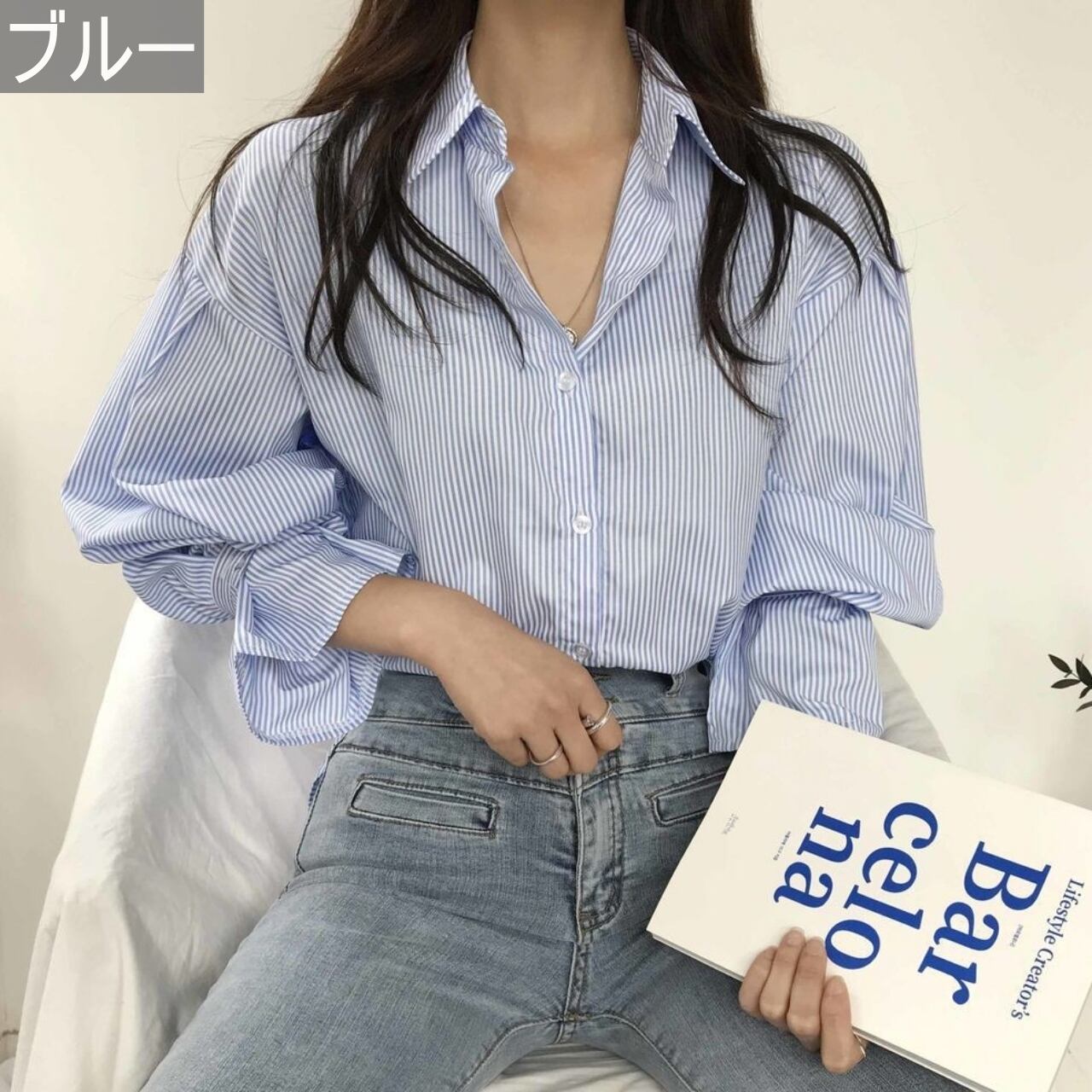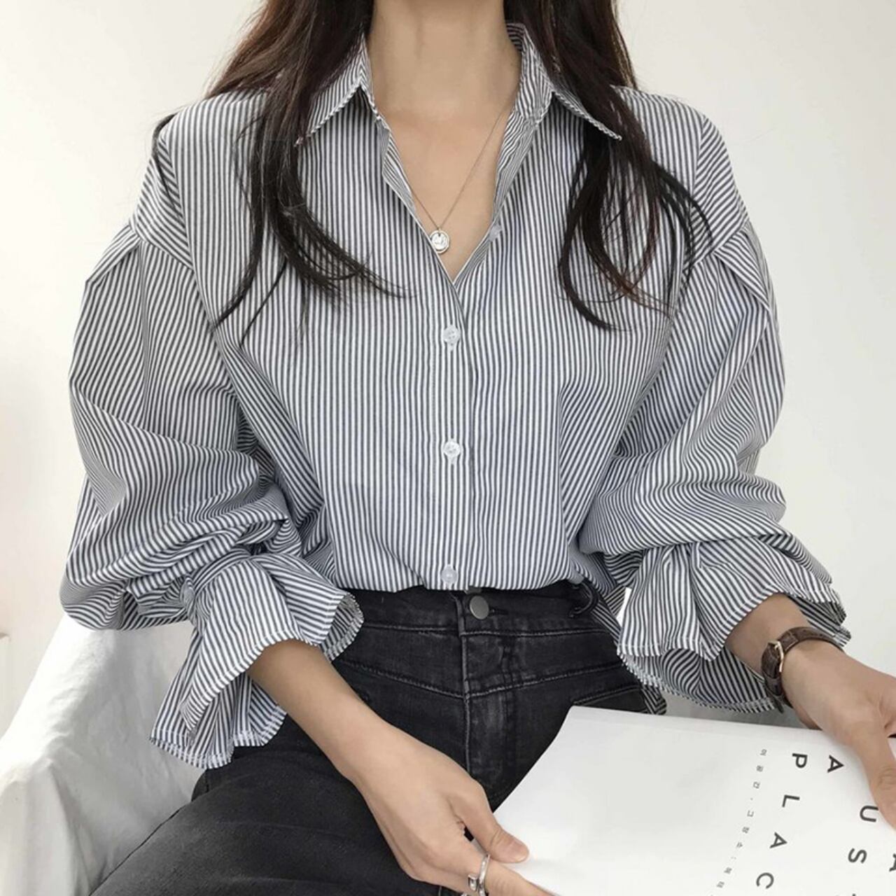 トップス レディース 送料無料 シャツ ワイシャツ ブラウス ストライプ柄 縞模様 ブルー 青 ブラック 黒 前開き 襟付き スタンダードカラー 長袖 ランタンスリーブ パフスリーブ バルーンスリーブ フリル サーキュラーカフス ラッフルカフス 爽やか 薄手 涼し ガーリー キュート 可愛い かわいい ゆったり ゆる 大きめ フリーサイズ カジュアル おしゃれ お洒落 定番 こなれ感 春服 夏服 秋服 10代 20代 30代 普段使い 重ね着 着回し 韓国系 オルチャン デート おでかけ 新作 2021
