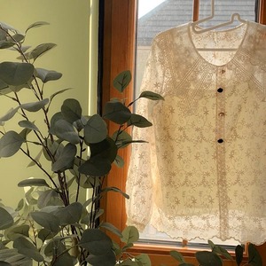 トップス レディース 送料無料 シャツ ブラウス ワイシャツ 総レース プルオーバー ビッグ襟 ビッグカラー 花柄レース 花柄 小花柄 小花柄 クルーネック ラウンドネック 長袖 パフスリーブ ランタンスリーブ バルーンスリーブ バブルスリーブ ボリューム袖 アイボリー 白系 ボタン 透け感 透明感 シースルー 抜け感 こなれ感 ガーリー キュート 上品 エレガント おしゃれ お洒落 レトロ S M L XL 大きめ ゆったり 春服 夏服 秋服 冬服 オールシーズン シーズンレス 重ね着 普段使い 着回し