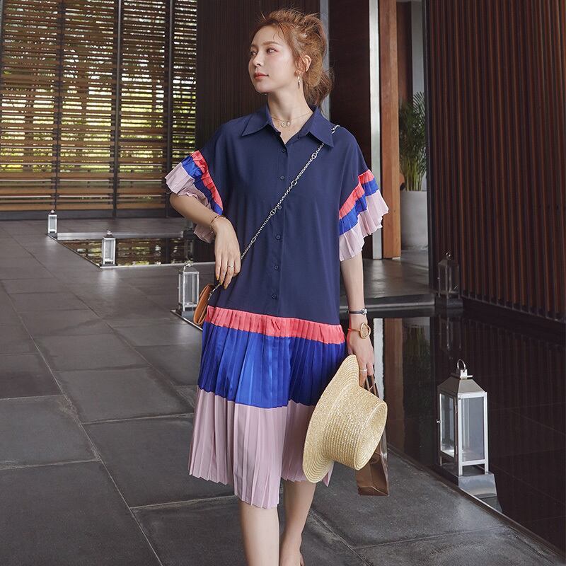 ワンピース レディース 送料無料 ミモレ丈 襟付き マルチカラ― 切り替え パッチワーク半袖 フレアスリーブ プリーツ ラージサイズ ラウンドネック Aライン シャツワンピース トレンド ファッション ボリューム袖 バルーンスリーブ パフスリーブ ゆったり 大きめ ゆる 楽ちん きれいめ シンプル かわいい 可愛い カジュアル おしゃれ お洒落 こなれ感 抜け感 上品 エレガント 春 春服 夏 夏服 デート 通学 学生 お出かけ 普段使い 着回し 重ね着 無地 単色 体型カバー ブラック エレガント