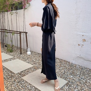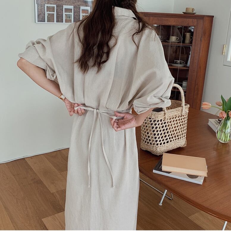 ドルマンスリーブとすっきりしたシャツ素材が好バランスなワンピース
