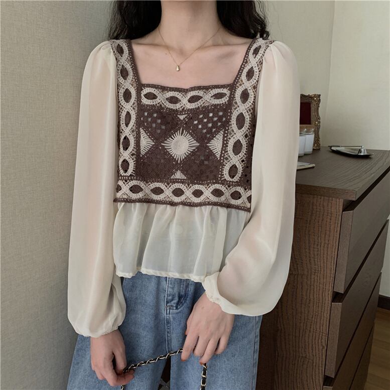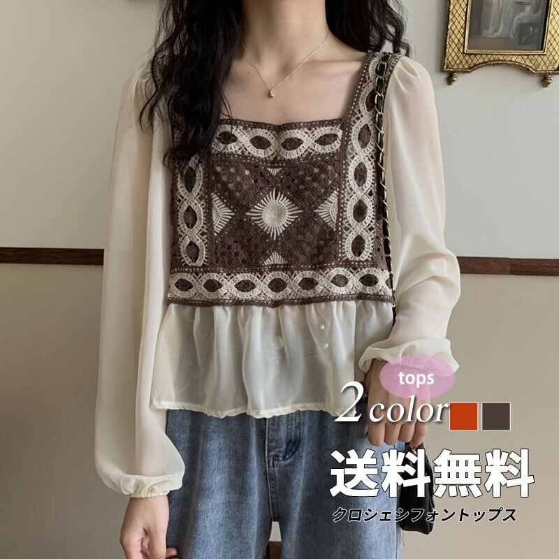エスニック風トップス レディース 送料無料 トップス シャツ ブラウス ボヘミアンシフォン切替えブラウス エスニック刺繍ボリュームブラウス クロシェトップス ショート丈 長袖 ボリューム袖 バルーンスリーブ スクエアネック ペプラム 切り替えデザイン ドッキング 刺繍 シフォン クロシェ 編み込み 透け感 シースルー 異素材MIX 大人可愛い きれいめ 上品 レトロ エスニック キュート ガーリー ニュアンスカラー ボタニカル ボヘミアン 高見え 格上げ インスタ映え 春夏 おしゃれ お出かけ トレンド