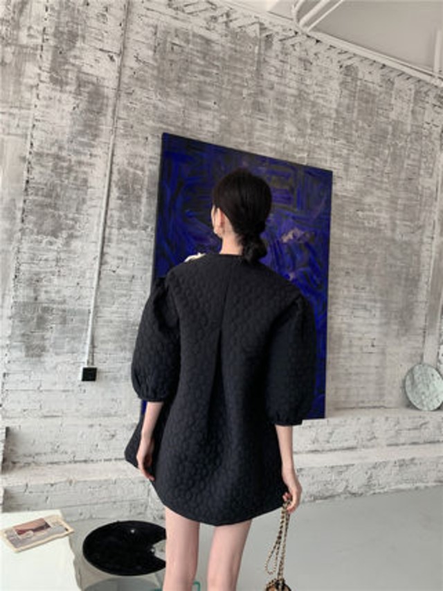 アウターのようなキルティング生地で仕立てたワンピースです。