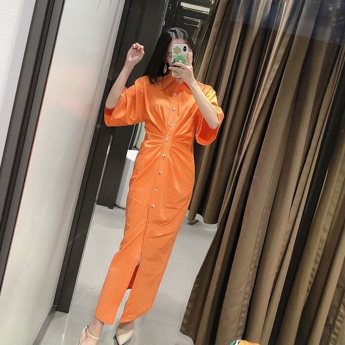 ウエストにギャザーを集めて立体的に仕立てたワンピースです。