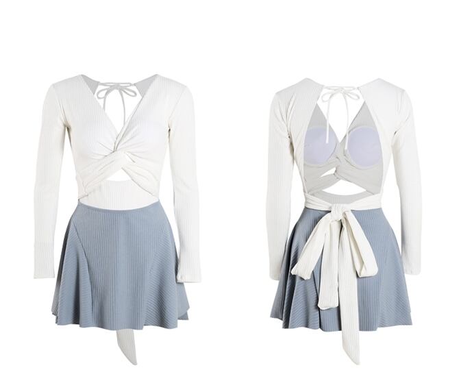 バックリボンとバストノットが可愛いワンピース水着です。