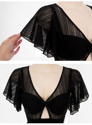 ウエストとデコルテのシースルーがセクシーな水着です。