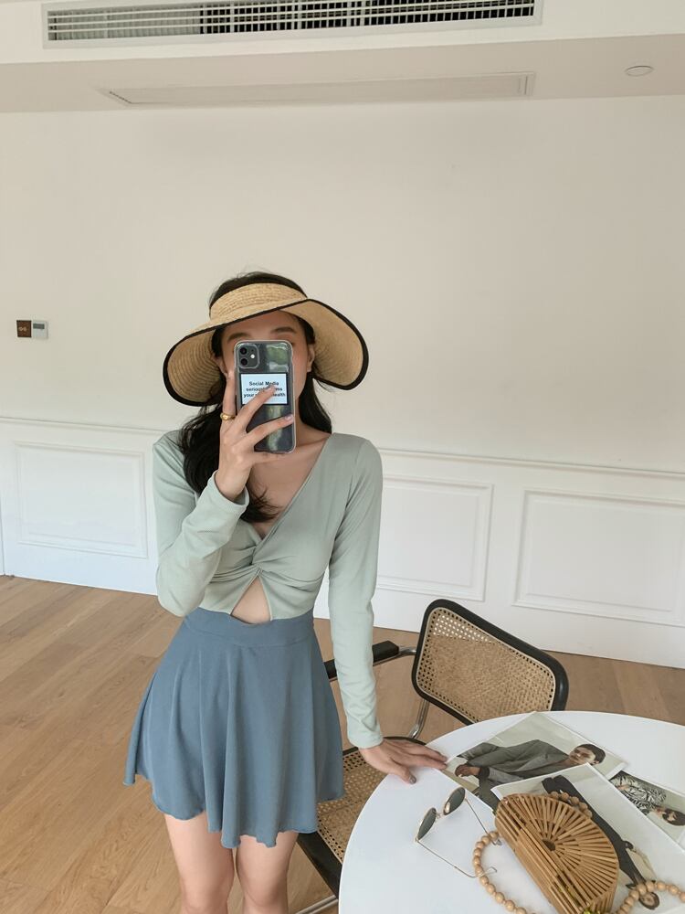 タイトなトップスのとバストノットが可愛いオールインワン水着です。