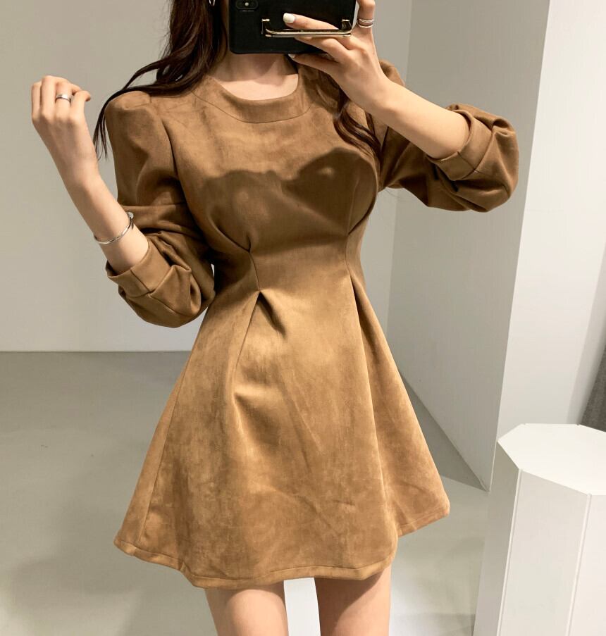 ワンピース レディース 送料無料 2色 ミディアムワンピース ミニワンピース フレア タック クルーネック パフスリーブ 細身 ゆる カジュアル ラフ 体系カバー 着痩せ 無地 レトロ 婦人服 10代 20代 30代 40代 50代 ボックスシルエット Iライン 大人 重ね着 着回し 春服 春 夏服 夏 シンプル お洒落 おしゃれ アジアン エスニック ファッション コーデ スタイル 休日
