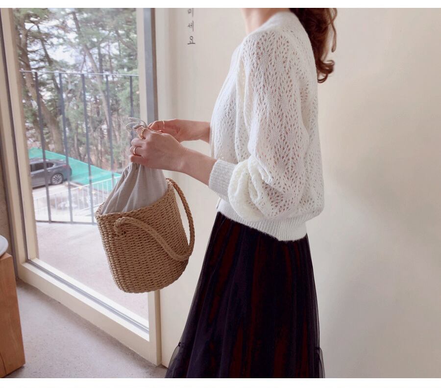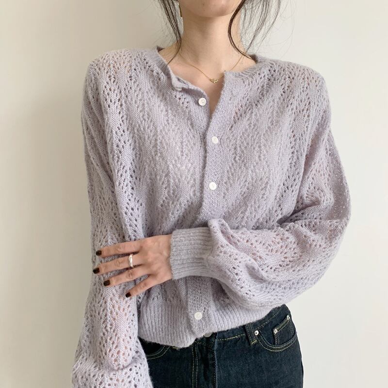 カーディガン クルーネックセーター レディース 送料無料 3色 バブルスリーブ ケーブルニット 透かし編み 小花柄 カーディガン ジャケット レディース ファッション ボリューム袖 バルーンスリーブ パフスリーブ ゆったり 大きめ ゆる 楽ちん きれいめ シンプル かわいい 可愛い カジュアル おしゃれ お洒落 こなれ感 抜け感 上品 エレガント 春 春服 夏 夏服 デート 通学 学生 お出かけ 普段使い 着回し 重ね着 無地 単色 体型カバー ガーリー 大人女子 インスタ映え