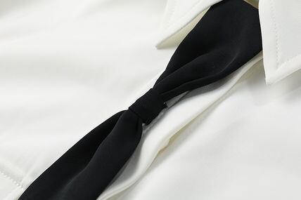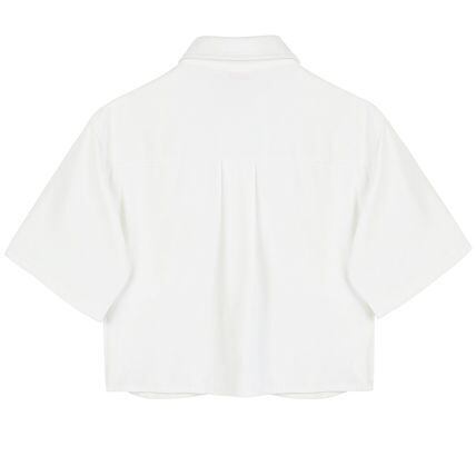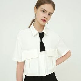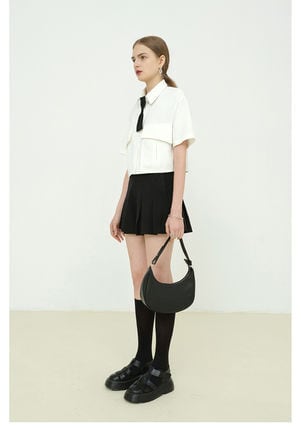 制服のようなボウタイが可愛いクロップ丈シャツ。