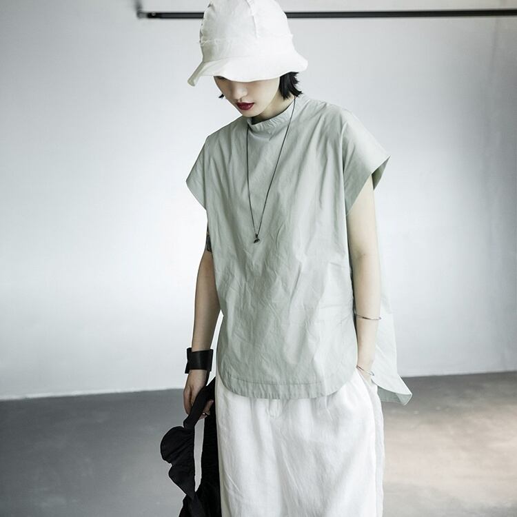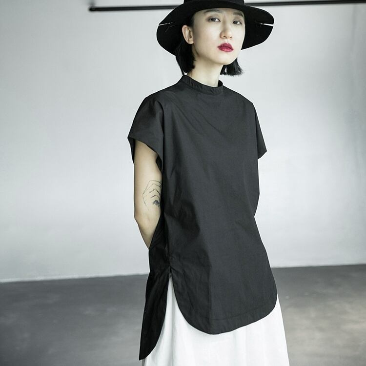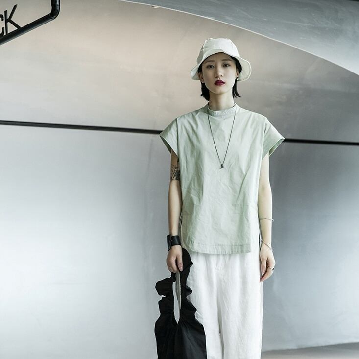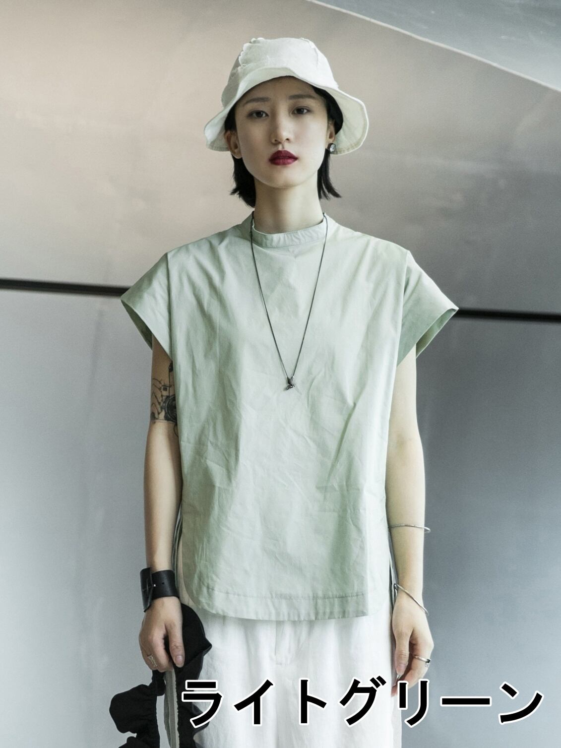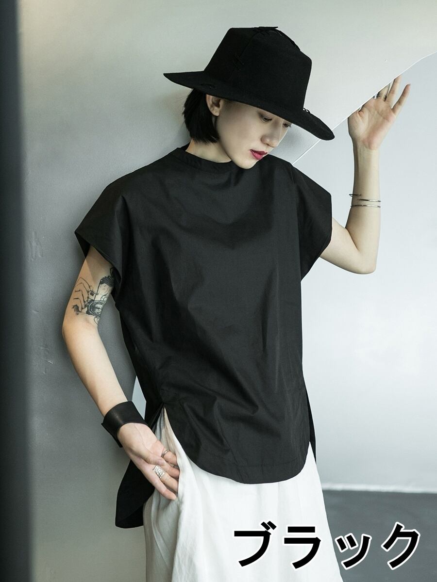 トップス レディース 送料無料 2色 フレンチスリーブTシャツ 半袖 Tシャツ おしゃれ ブラウス スタイル 小顔見せ 着痩せ 体形カバー インスタ トレンド フェミニン きれいめ かわいい コットン 綿 バックボタン オフィス 通勤 OL エレガント フェミニン クール モダン モノトーン カラーバリエーション ブラック ライトグリーン こなれ感 シンプル ベーシック 無地 夏 お出かけ アクティブ かっこいい クルーネック ラウンドネック ティーシャツ ブラウス スリット