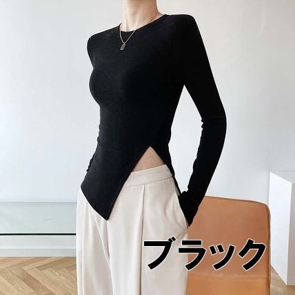 トップス セーター ニット レディース 送料無料 4色 カットソー ニットソー 袖あり 長袖 クルーネック リブニット かわいい スリット 大人可愛い きれいめ シンプル 上品 おしゃれ 大人女子 こなれ感 キュート セクシー エレガント モダン 主役級 抜け感 S M L ゆったり 白 ホワイト 黒 ブラック 茶色 ブラウン ベージュ 大人カラー カラバリ 無地 春 秋 冬 20代 30代 ママ オフィス ビジネス OL デート お出かけ イベント 旅行 着回し 普段使い 韓国系 楽ちん 体系カバー