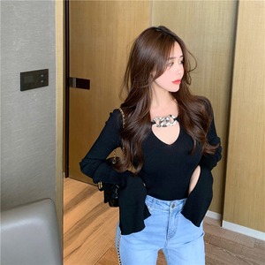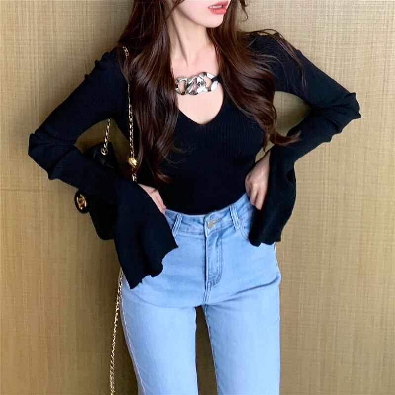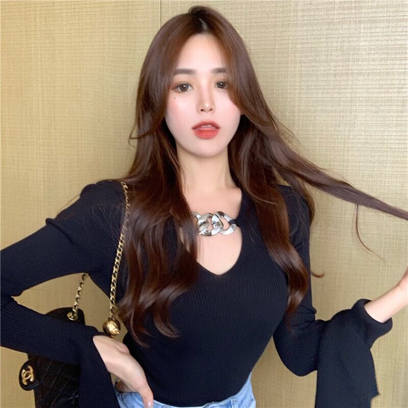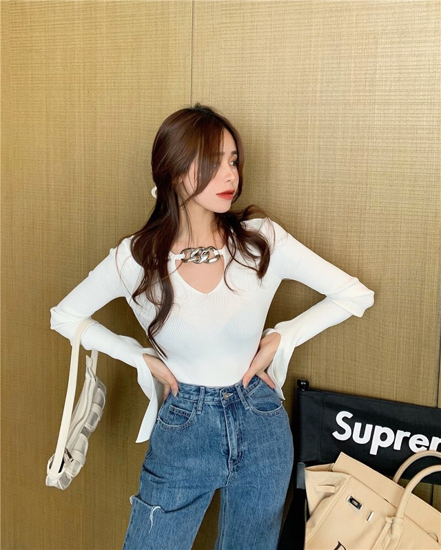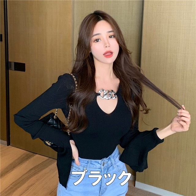 スリム リブトップス カットソー 送料無料 2色 Vネック 長袖 リブニット 大人可愛い きれいめ チェーン 装飾 モチーフ 大人女子 肌見せ 無地 春 秋 ガーリー 大人 学生 韓国系 お出かけ 外出 きれいめカジュアル 着回し ファッション デート コーディネート 重ね着 休日 特別な日 お祝い 記念日 メンズウケ カジュアル 普段着 春コーデ 秋コーデ 韓国 おしゃれ シンプル スタイル タイト 細見せ 韓国ファッション 長袖 オフィスカジュアル 30代 オフィス ワンポイント ママコーデ