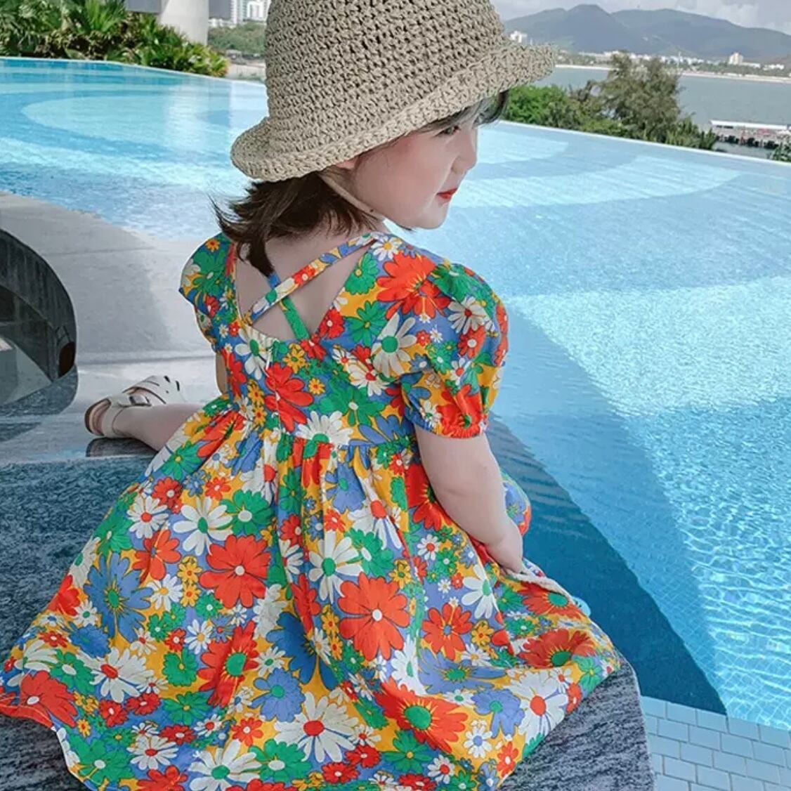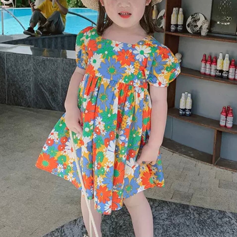 子供服 花柄 90〜130 ワンピース フレアスカート バッククロス 送料無料 キッズ キッズコーデ キッズファッション マルチカラー 半袖 パフスリーブ 可愛い きれいめ エレガント クルーネック 春 夏 秋 ガーリー お出かけ 外出 きれいめカジュアル 着回し ファッション リゾート 海 旅行 コーディネート 重ね着 休日 特別な日 お祝い 記念日 カジュアル 普段着 春コーデ 夏コーデ 秋コーデ 韓国 おしゃれ シンプル ゆったり 韓国ファッション ワンポイント リゾートコーデ 海コーデ コーデ