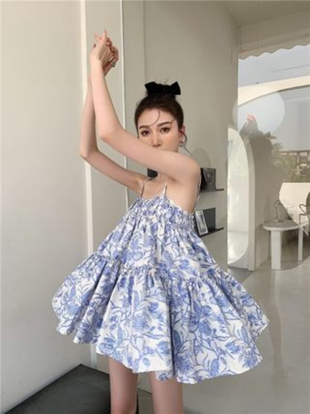 ふんわり立体的に仕立てたショート丈のティアードワンピース。