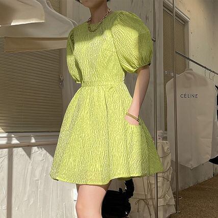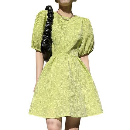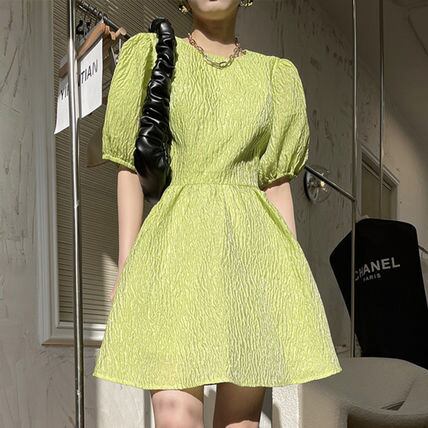 ワンピース ミディアム丈 送料無料 フレアワンピース シャーリング シャツワンピース タック クルーネック ちりめん シアー シースルー 半袖 袖あり パフスリーブ 袖あり パフスリーブ スクエアネック Aライン かわいい 大人可愛い 大人 上品 おしゃれ お洒落 大人可愛い 大人女子 ラブリー キュート ガーリー 主役級 存在感 とろみ感 オフホワイト ベージュ 無地 春 夏 10代 20代 30代学生 デート お出かけ 女子会 休日 パーティー イベント リゾート トレンド 流行