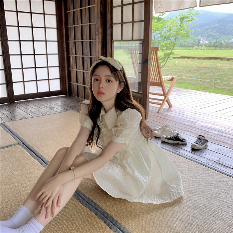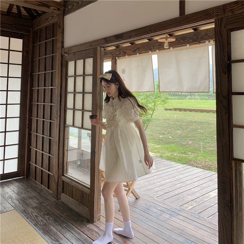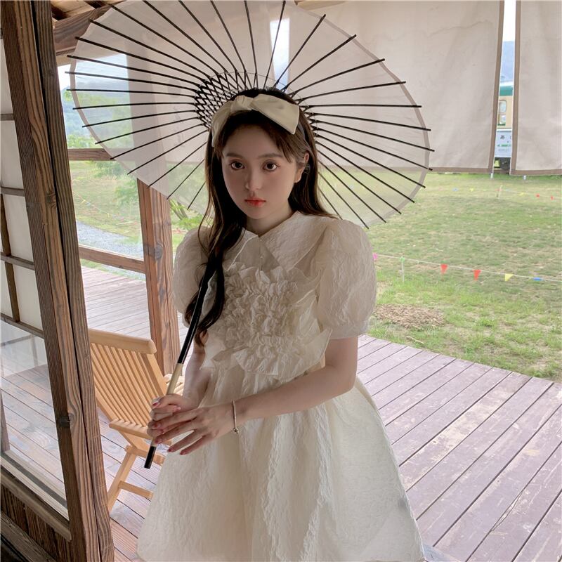 ワンピース ミディアム丈 送料無料 ミニワンピース ショート丈 フレアワンピース 襟付き ビッグカラ― シャツワンピース フリル ちりめん シアー シースルー 半袖 袖ありパフスリーブ クルーネック Aライン かわいい 大人可愛い 大人 上品 おしゃれ お洒落 大人可愛い 大人女子 ラブリー キュート ガーリー 主役級 存在感 とろみ感 オフホワイト ベージュ 無地 春 夏 10代 20代 30代学生 デート お出かけ 女子会 休日 パーティー イベント リゾート トレンド 流行