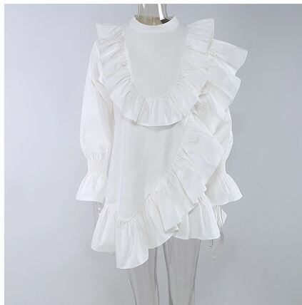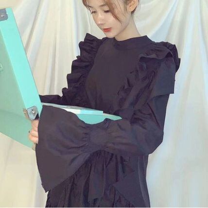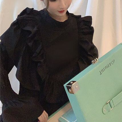フリルをふんだんにあしらったシャツブラウスです。
