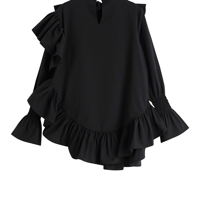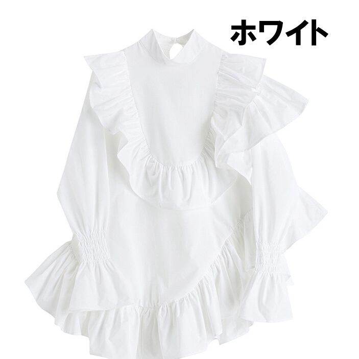 トップス レディース 送料無料 2色 シャツ ブラウス プリーツ アシンメトリー フリル スタンドカラー ハイネック キャンディースリーブ 無地 ゆったり ゆる 大きめ 楽ちん スキッパー パフスリーブ バルーンスリーブ バブルスリーブ ボリューム袖 長袖 プルオーバー シンプル 大人可愛い 大人女子 エレガント かわいい ふんわり 透け感 抜け感 こなれ感 お洒落 カジュアル ラフ おしゃれ きれいめ 涼し 10代 20代 30代 通学 学生 春服 夏服 普段使い 着回し デート おでかけ モテ