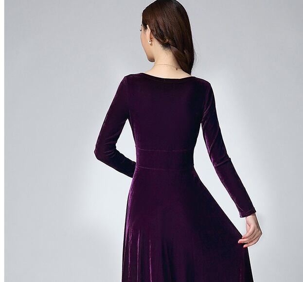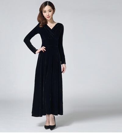 ワンピース ドレス フレアスカート マキシ丈 ロング ロング丈 袖あり 長袖 Vネック フレア セクシー エレガント 黒 ブラック 赤 レッド 青 ブルー 紫 パープル 無地 秋 冬 20代 30代 40代 50代 レディース お出かけ パーティー イベント 韓国 韓国系 オルチャン ファッション コーデ スタイル