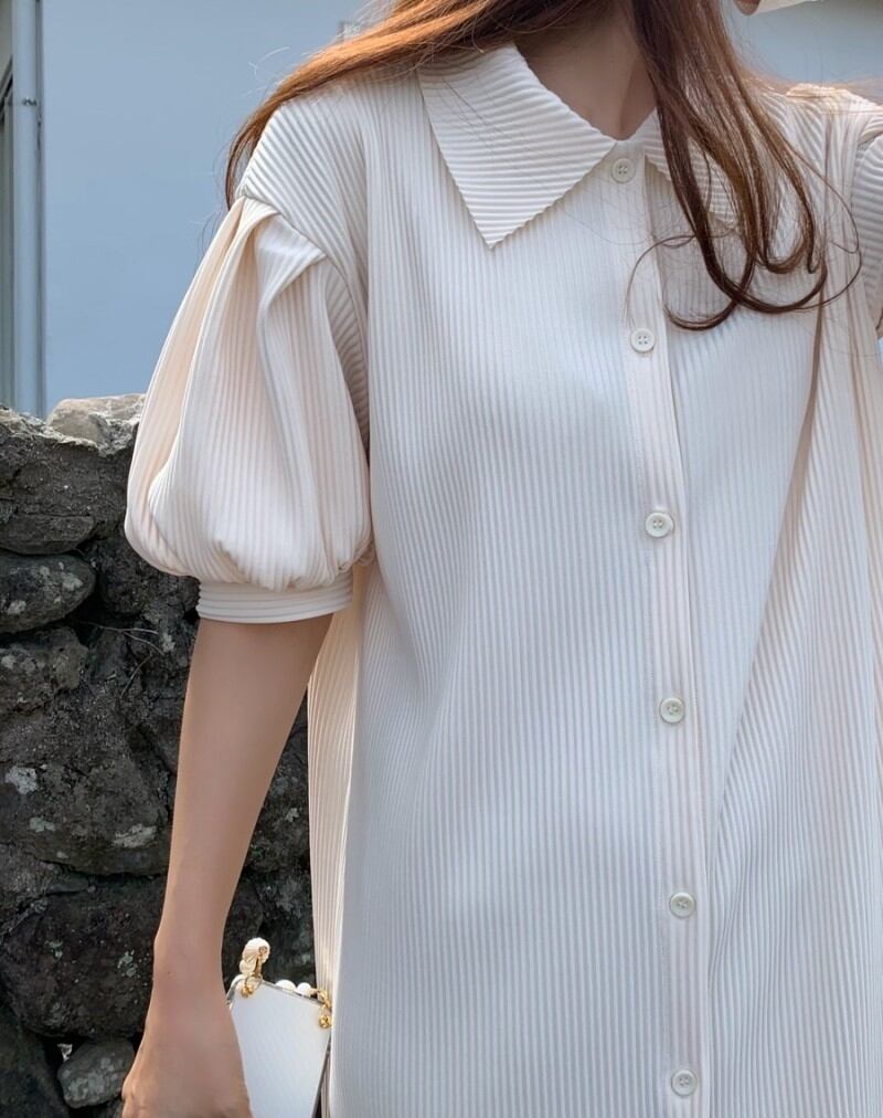 ワンピース レディース 送料無料 シャツワンピース ロングワンピース ロング丈 マキシワンピース マキシ丈 Iライン シースライン ストレート 無地 単色 アイボリー 白系 ブラック 黒色 ピンク 前開き 襟付き ドロップショルダー パフスリーブ バブルスリーブ バルーンスリーブ ランタンスリーブ ボリューム袖 ボタン 大人可愛い シンプル カジュアル 上品 エレガント 大人女子 抜け感 こなれ感 かわいい キュート 春服 夏服 20代 30代 40代 デート おでかけ 休日 楽ちん ゆったり 普段使い