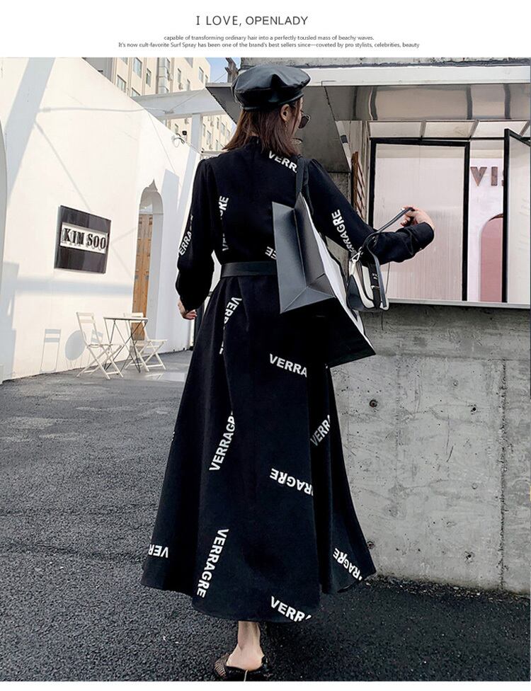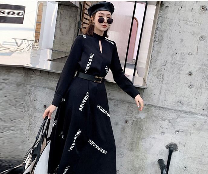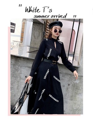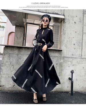 ブラック生地にホワイトのロゴがモダンなワンピース。