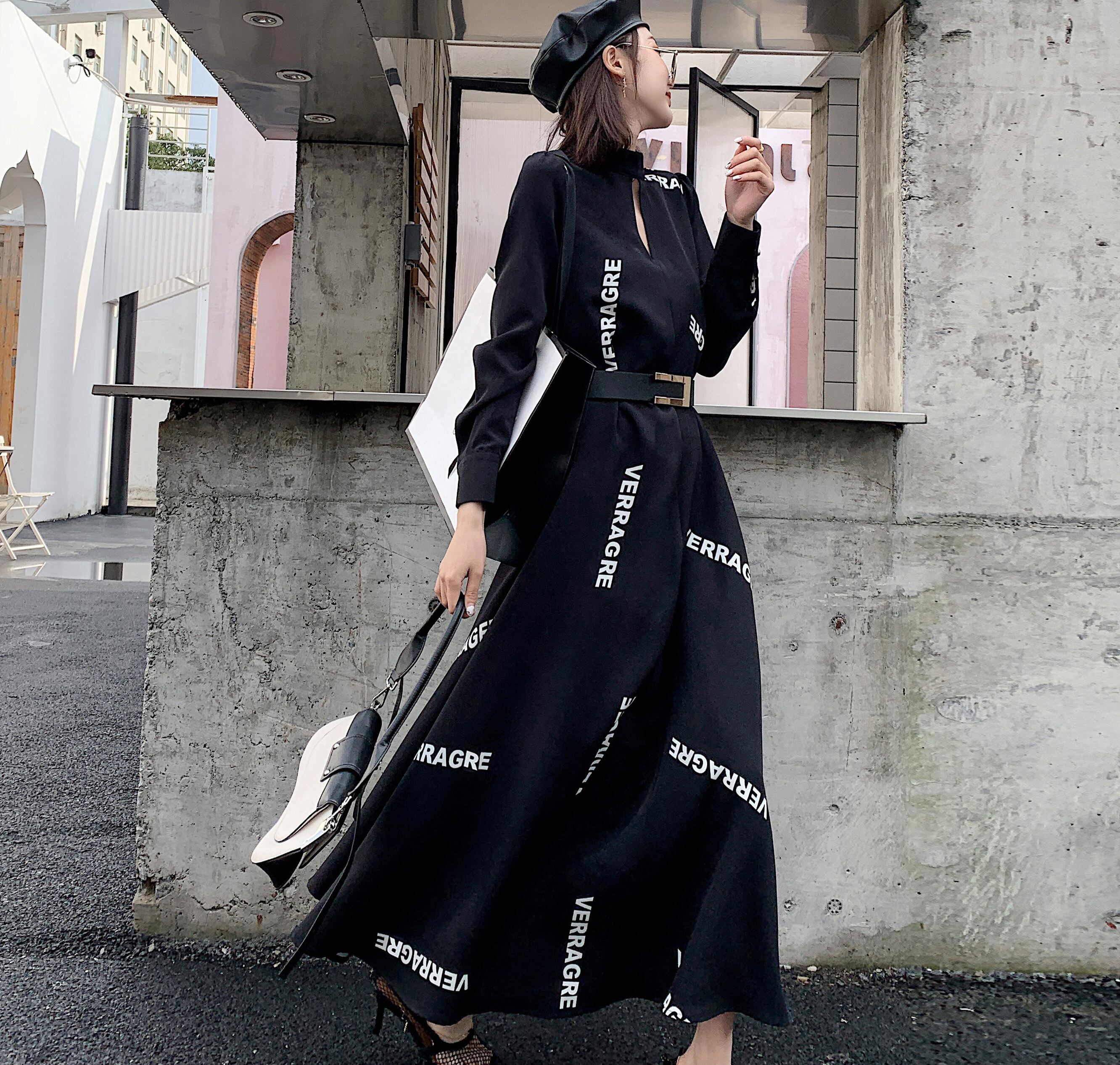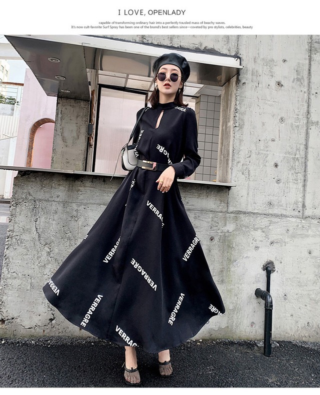 シフォンワンピース レディース 送料無料 ワンピース ドレス フレアワンピース ロゴ 英字 アルファベット ロングドレス スタンドカラー ウエストマークフレアワンピース ベルト付き ハイネックロングドレス ミモレ丈 演奏会ドレス ひざ下ロング丈 長袖 フレアスリーブ ハイネック スタンドカラー フレア ウエストマーク ウエストリボン エレガント 大人可愛い きれいめ 華やか 上品 レトロ クラシック ベージュ 大人カラー ニュアンスカラー オケージョン 高見え 格上げ 春夏 秋冬 お呼ばれ
