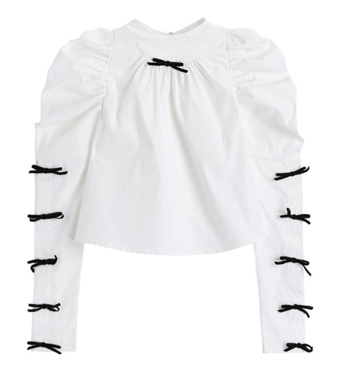 ジュリエットスリーブがロマンチックで可愛いトップスです。