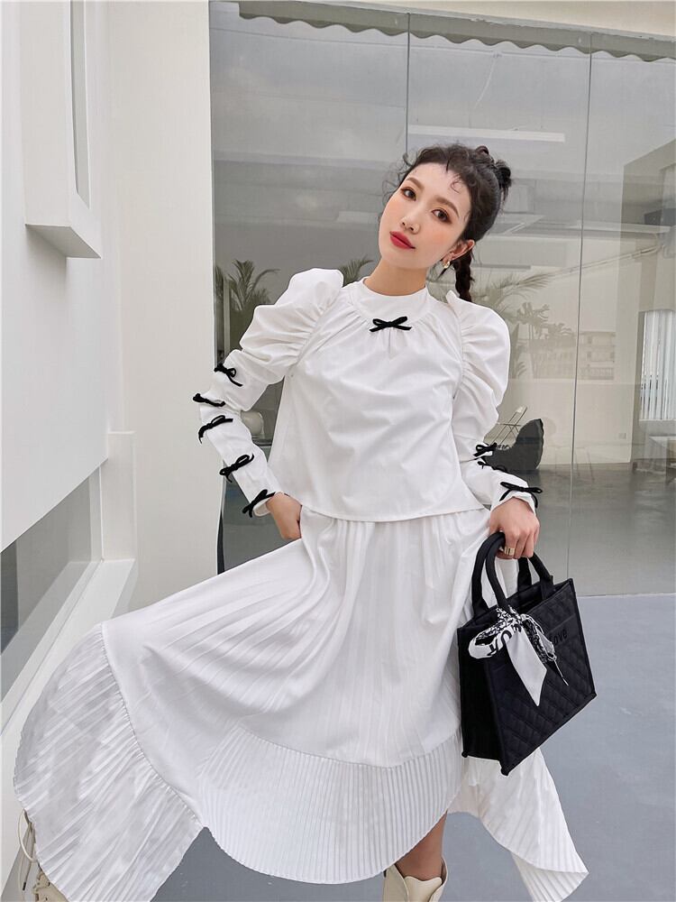 トップス レディース 送料無料 シャツ ブラウス ロングTシャツ プルオーバー ショート丈 クルーネック オーバーショルダー パワーショルダー パフスリーブ ジュリエットスリーブ エレファントスリーブ リボン ワイド ゆったり ゆる 楽ちん 白色 ホワイト ガーリー カジュアル 可愛い かわいい キュート こなれ感 抜け感 お洒落 おしゃれ ラブリー 春服 夏服 秋服 冬服 オールシーズン シーズンレス おでかけ デート 着回し 普段使い 重ね着 10代 20代 韓国 オルチャン ファッション コーデ