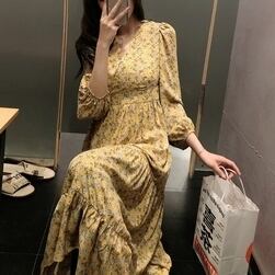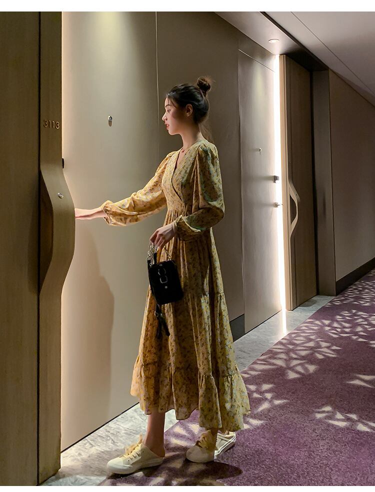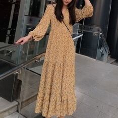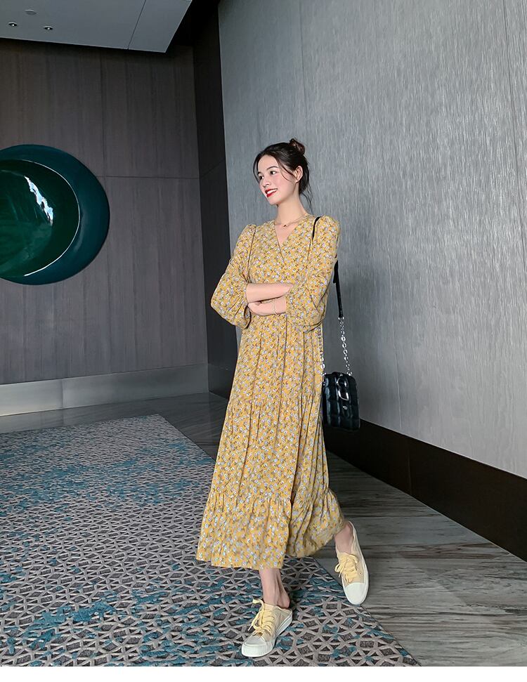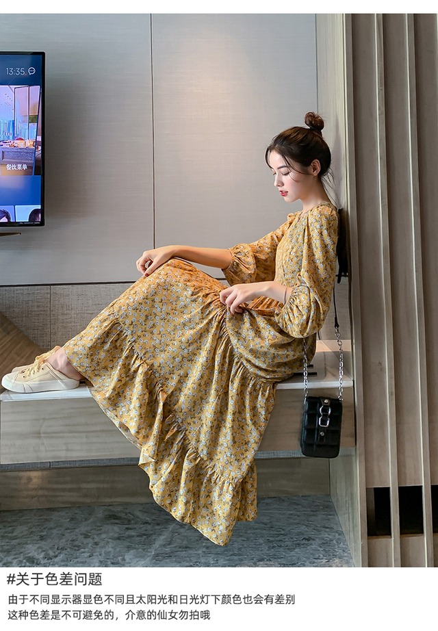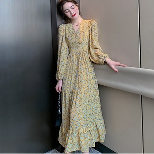レトロ可愛い花柄のシフォンワンピースです。