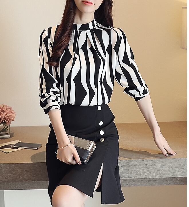 トップス レディース 送料無料 シャツ ブラウス 長袖 襟付き スタンドカラー ストライプ ライン タック 幾何学模様 パフスリーブ 透け感 抜け感 こなれ感 シック クール カッコイイ かっこいい 個性的 華やか 派手 無地 春 春服 春物 秋 秋服 秋物 10代 20代 普段使い 重ね着 着回し おしゃれ お洒落 ラフ カジュアル 前開き シルバー 銀 ブラック 黒 グレー 灰色 涼し 通気性 薄手 ポリエステル シフォン シフォンシャツ ワイド 存在感 モード系 エキゾチック デート