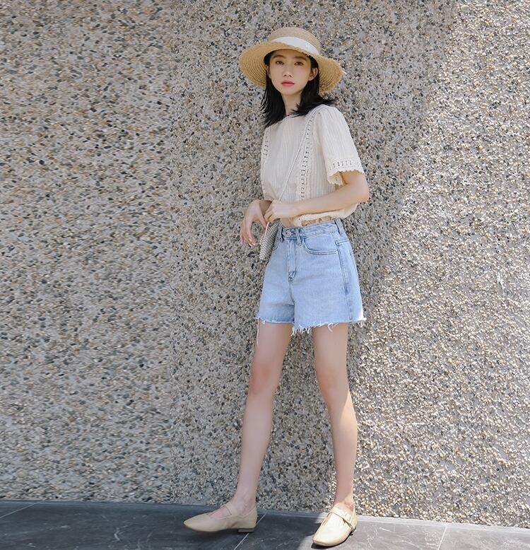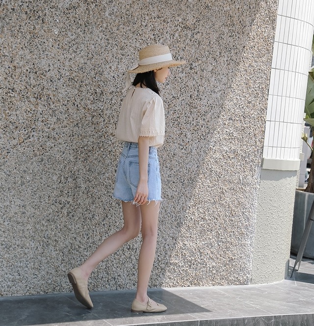 風合いのあるの生地で仕立てたショート丈ブラウスです。