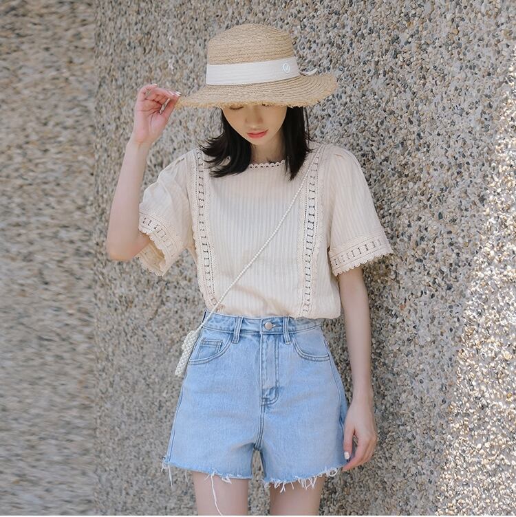 トップス レディース 送料無料 ブラウス シャツ クロップ丈 クロシェ編み ぺールトーンタック フレア 半袖 総レース 襟付き バルーンスリーブ 透け感 シースルー パフスリーブ ホワイト 白 ピンク アプリコット 単色 透け感 こなれ感 抜け感 ガーリー かわいい 可愛い 涼し 通気性 キュート 上品 エレガント きれいめ ラブリー 女の子 お洒落 おしゃれ 春 春服 夏 夏服 10代 20代 デート おでかけ モテ 女子会 普段使い 着回し 重ね着 定番 2021 韓国 韓国系 オルチャン