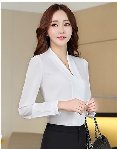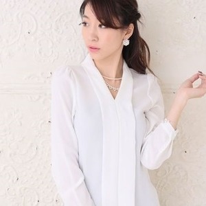 深いVネックスが洗練された大人っぽさを演出するブラウス。