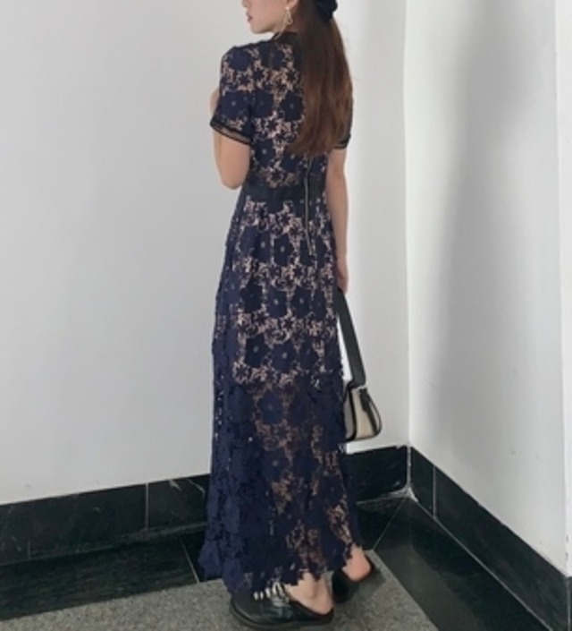 花柄の総レースの透け感を活かしたワンピース。