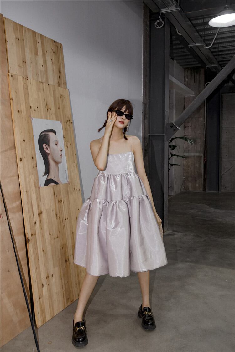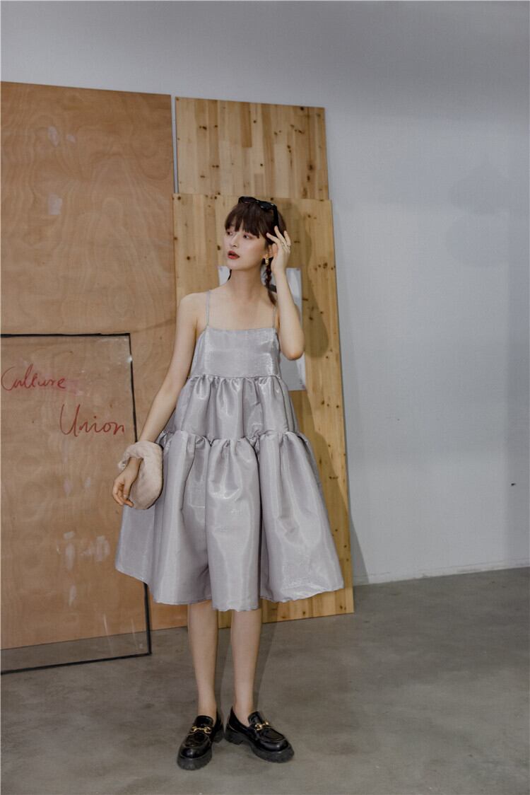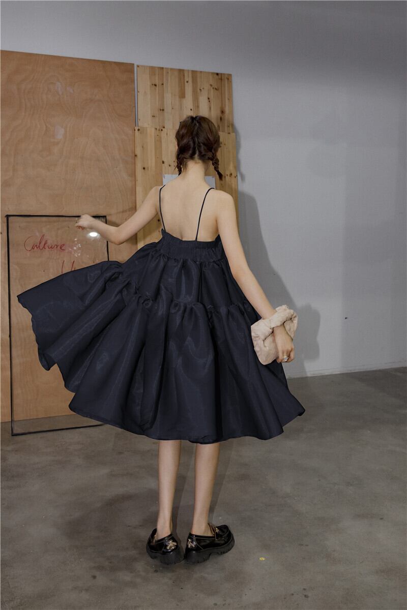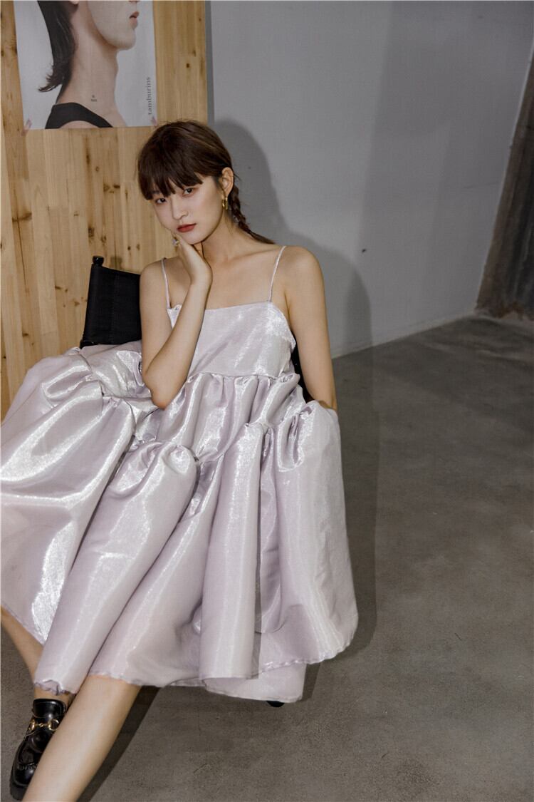 ふんわり立体的に仕立てたショート丈のティアードワンピース。