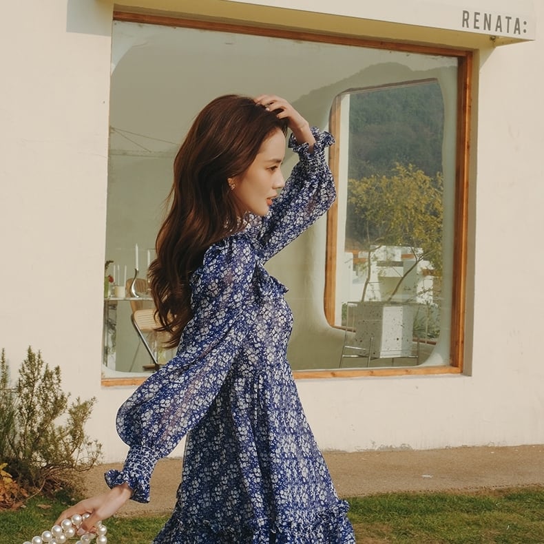 ふんわりとしたティアード切り替えでスカートが可愛い。