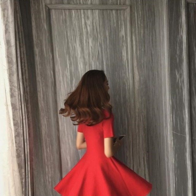 フレアスカートがAラインに広がりシックでキュートな印象に。