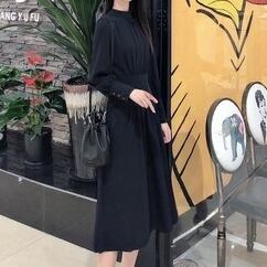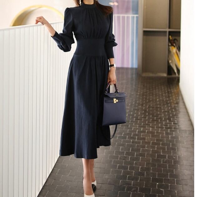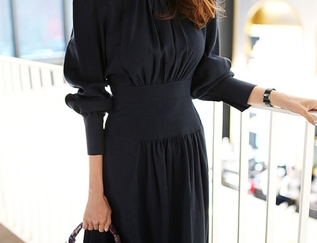 ウエストマークがシックなワントーンのフレアワンピース。