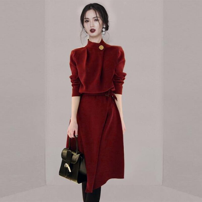 大きなメタルボタンとベルトのスクエアバックルが可愛いワンピース。