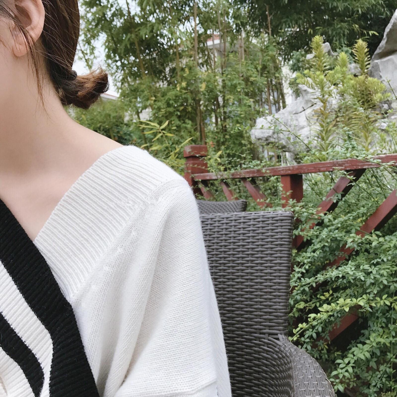 オフショルダー ストライプ Vネック トップス 袖あり 長袖 シンプル 大人 おしゃれ お洒落 大人女子 こなれ感 マニッシュ 個性的 クール モード系 モダン 白 ホワイト 黒 ブラック モノトーン 秋 冬 20代 30代 40代 50代 レディース 通勤 学生 通学 デート お出かけ 休日 着回し 普段使い 重ね着 韓国 韓国系 オルチャン ファッション コーデ スタイル モテ トレンド 流行