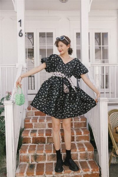 ワンピース レディース 送料無料 ジャガードワンピース フレアワンピース フラワープリント 半袖 Vネック デコルテ ミニワンピース バルーンスリーブ おしゃれ エレガント レトロ クラシカル 花柄 スタイル 小顔見せ 着痩せ 体形カバー インスタ トレンド きれいめ フェミニン 大人かわいい フリル フレアスカート 張り感 ボリューム 旅行 デート オフィス 通勤 お出かけ ハイウエスト フラワープリント ギャザー ガーリー キュート ウエストリボン ウエストベルト ハイウエスト