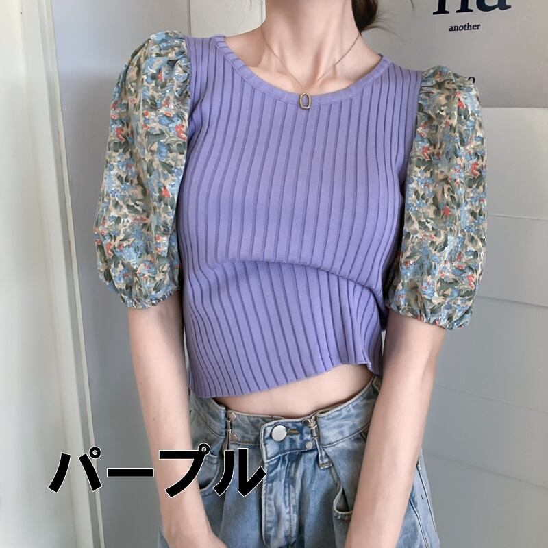 ニット ドッキングブラウス トップス タートルネック 送料無料 4色 五分袖 レディース ボリューム袖 花柄 かわいい 大人可愛い 大人ガーリー ガーリー 春 春コーデ 秋 秋コーデ エレガント 上品 10代 20代 学生 外出 お出かけ 休日ファッション コーディネート ファッション オフィス オフィスカジュアル 韓国系 韓国ファッション 韓国コーデ 着回し 普段着 特別な日 S M L ブラウン グレー ブラック 体型カバー ハイネック カジュアル おしゃれ きれいめ フリル ブラウス 3色 ゆったり