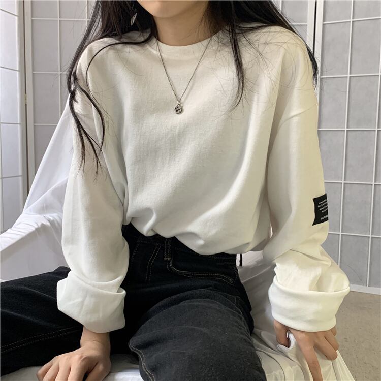 バルーン袖プルオーバー レディース 送料無料 2色 トップス Tシャツ ロゴ ルーズフィット プルオーバー 白シャツ 白トップス ワッペン 切替プルオーバーシャツ 長袖 ボリューム袖 パフスリーブ ドロップショルダー バルーンスリーブ ラウンドネック クルーネック 大人可愛い きれいめ 上品 レトロ 大人女子 こなれ感 ラフ キュート ガーリー ルーズ 抜け感 ゆったり 白 ホワイト 楽ちん 二の腕カバー 定番 春夏 秋冬 大人 かわいい おしゃれ デイリー オフィス 通勤 通学 トレンド