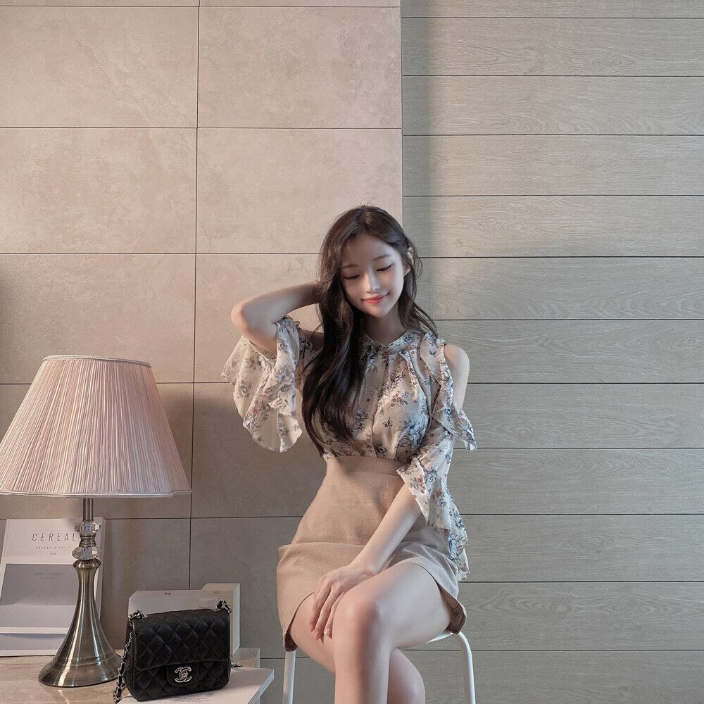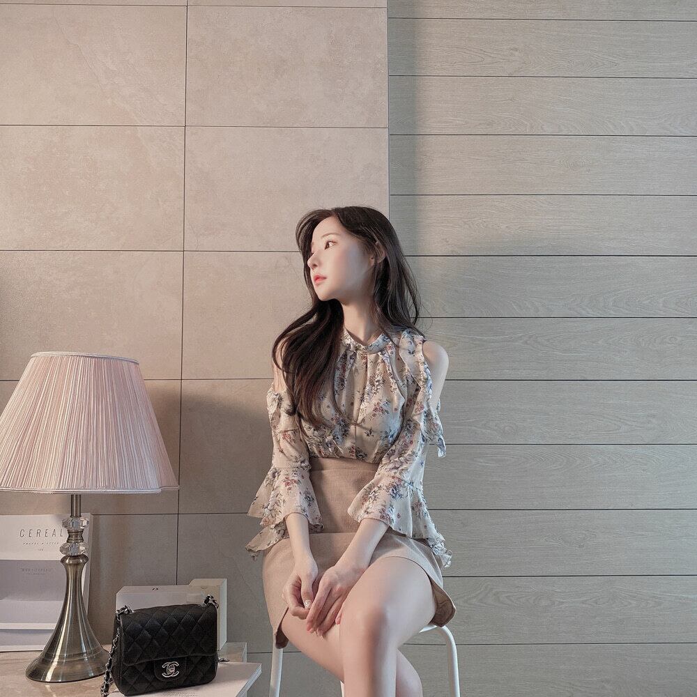 柔らかなシフォンのオープンショルダーブラウス。