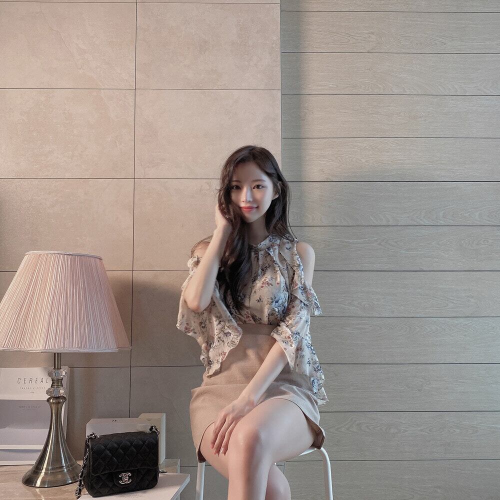 フラワープリントがロマンチックで上品な印象。