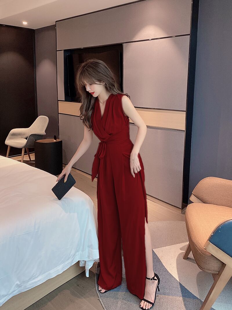 オールインワン レディース 送料無料 3色 コンビネゾン サロペット ジャンプスーツ リボン カシュクール スリット オーバーオール ノースリーブ ストレート ワイド ルーズフィット ポケット付き ワイド ワイドレッグ マキシ丈 ロング丈 コットン リネン 大人可愛い シンプル ガジュマル ラフ 大人 おしゃれ お洒落 ゆったり ゆる S M L XL ブルー 青 ホワイト 白 夏服 10代 20代 30代 40代 楽ちん 体型カバー 涼しい 休日 お出かけ 普段使い 重ね着 コーデ 涼しい