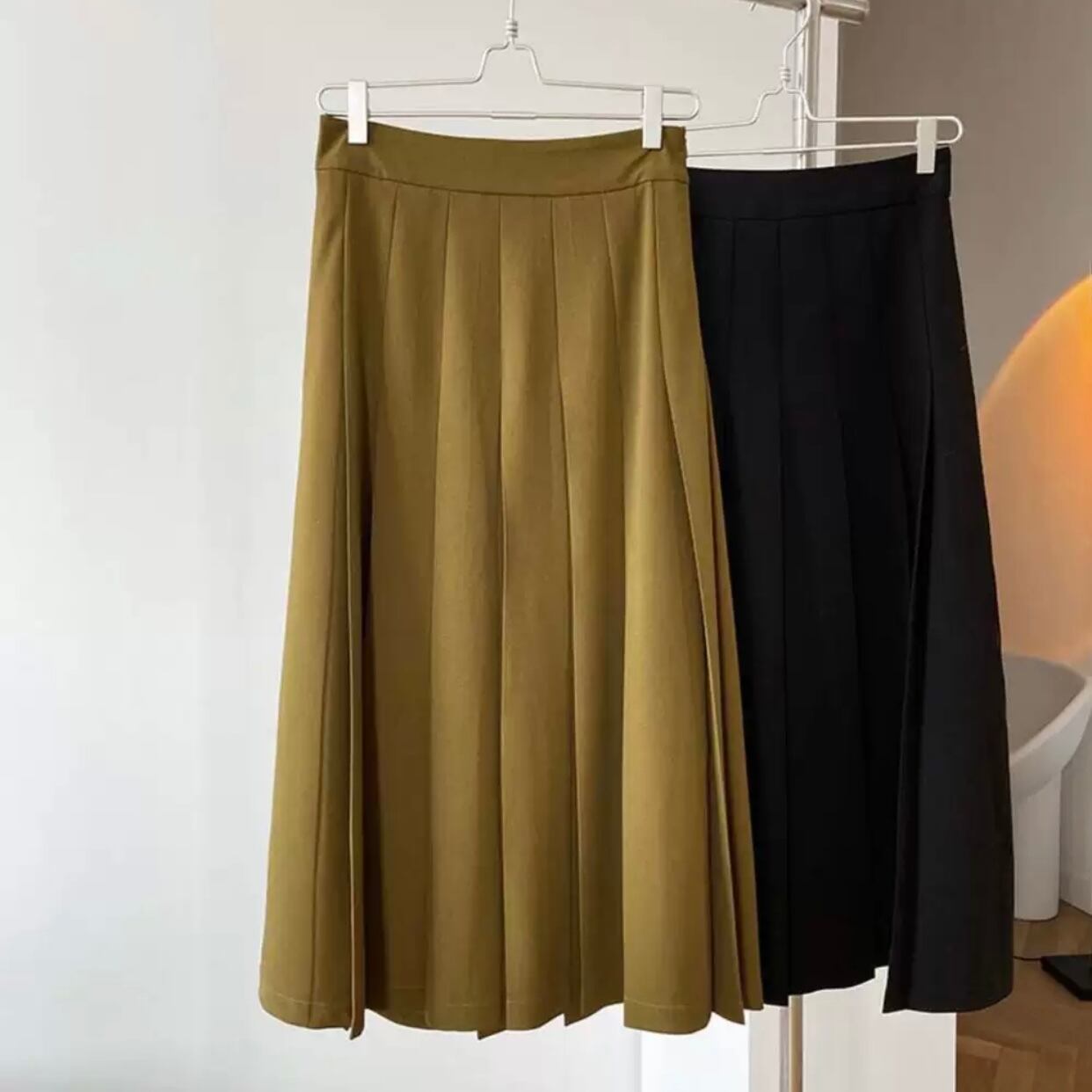 2色バリエーションのフレアスカート。