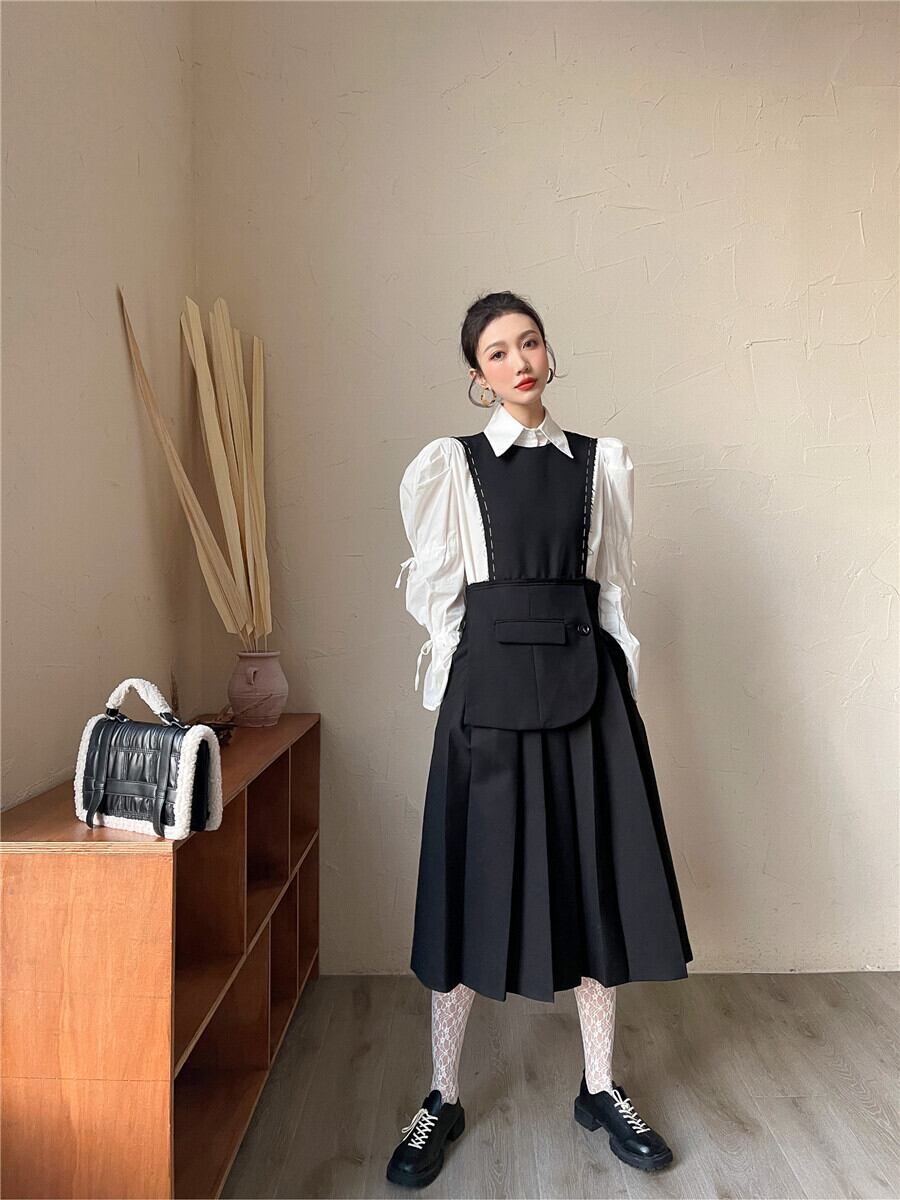 ワンピース レディース 送料無料 ワンピース プリーツワンピース リメイクデザインワンピース ロングワンピース ノースリーブワンピース ミモレ丈 おしゃれ モード モダン レトロ クール かわいい かっこいい こなれ感 スタイル 小顔見せ 着痩せ 体形カバー インスタ トレンド きれいめ エレガント ルーズ カジュアル ゆったり フレア 大人かわいい 上品 無地 ブラック ステッチ ゆる ノースリーブ Aライン ジャンパースカート スーツリメイク